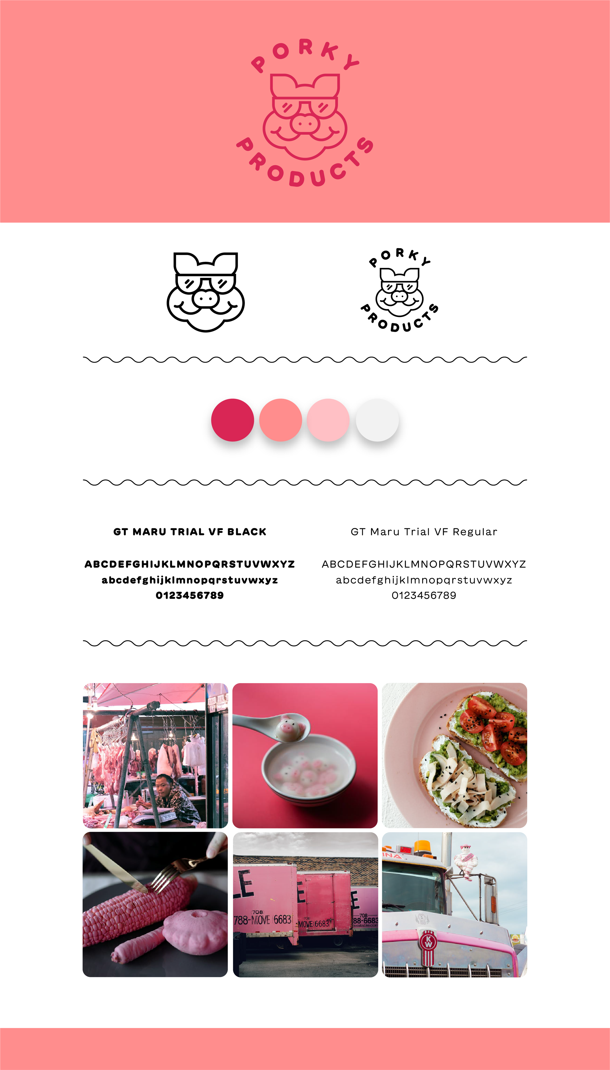 The final brand identity for Porky Products is fun, eye-catching, and uniquely expressive, perfectly embodying the playful and bold character I envisioned. Working with such a loud and outspoken brand identity allowed me to explore creative avenues and develop a distinctive brand "personality." The project not only resulted in a compelling visual identity, but also reinforced my passion for working with brands that have strong, defining characteristics. I am thrilled with the outcome, and I would love to do more brand work in the future!